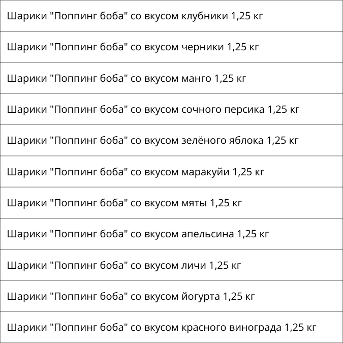 Обычные шарики «Поппинг Боба» с жидкой начинкой — в массе 1,25 кг.