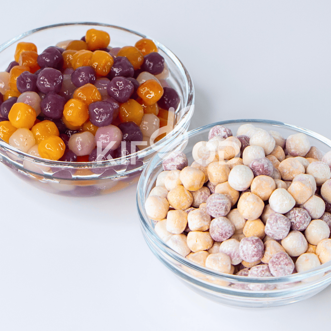 Шарики тапиоки «Таро» (taro balls) — это разноцветные шарики из тапиоки и батата, таро и фиолетового картофеля в составе (3 цвета - 3 вкуса), без сахара и подсластителей. Они менее тягучие, полезные и вкусные – сладковатые, с лёгким вкусом корнеплодов и клубней, из которых они изготовлены.